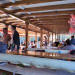 Yüzmeden sonra mis gibi öğle yemeği iyi gider. Ferah oturma alanında yemeğin tadı bambaşka. Açık büfede sıcak tavuk, soslu makarna, bulgur pilavı, salatalar ve soğuk mezeler sizi karşılar.