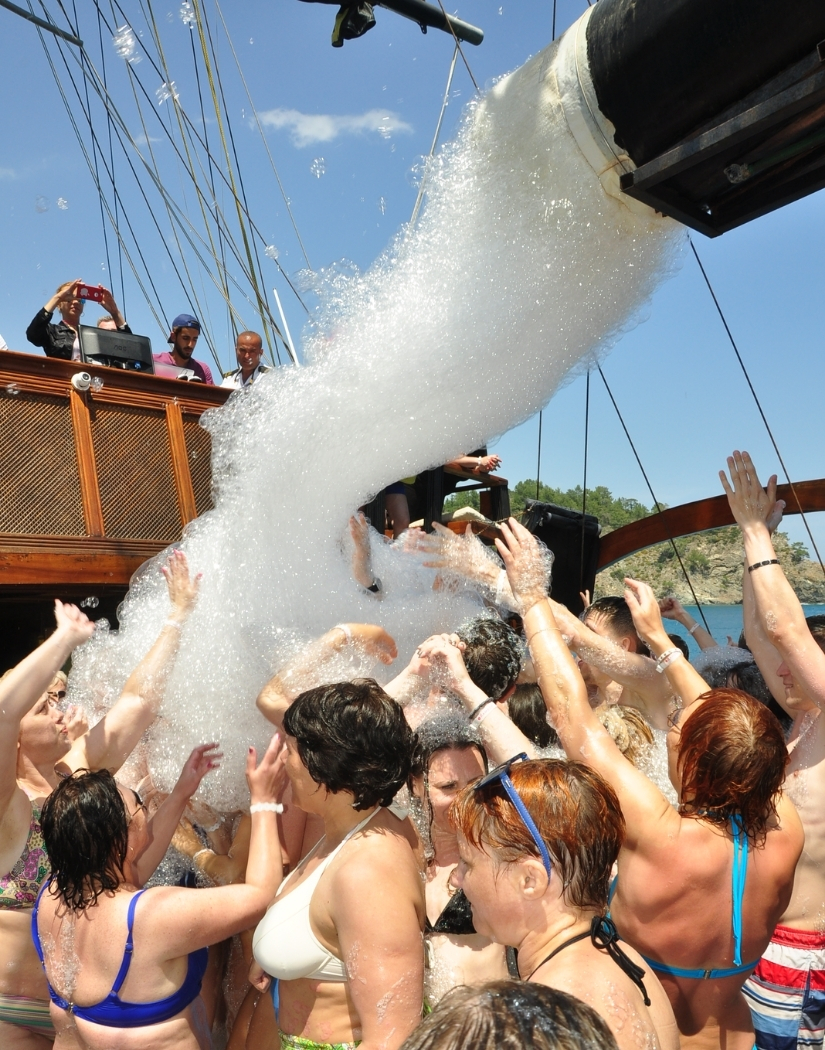 Korsan temalı teknede misafirlerimiz için kesintisiz eğlence sunuluyor. Dans şovlarıyla renklenen turumuzda, köpük partisi eşliğinde serinleyebilir ve denizin üzerinde parti yapmanın ayrıcalığını yaşayabilirsiniz. Sınırsız neşe ve macera için bu korsan turu tam size göre!