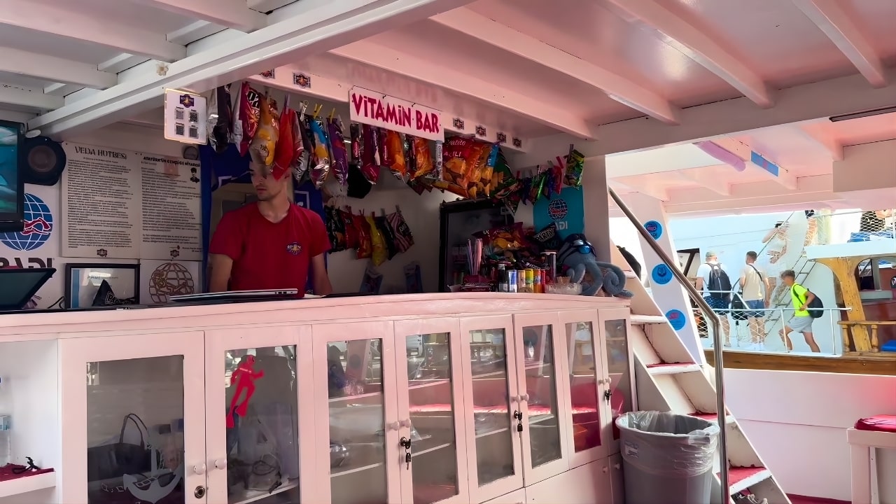 Phaselis molasının ardından eğlence başlar. Teknenin 2. katında, DJ performansı eşliğinde