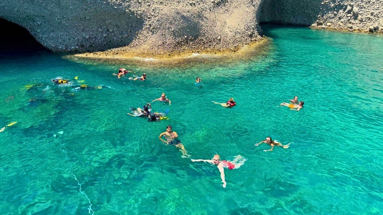 Masmavi ve berrak deniziyle öne çıkan bu koyda yaklaşık 1,5 saatlik yüzme molası verilir.