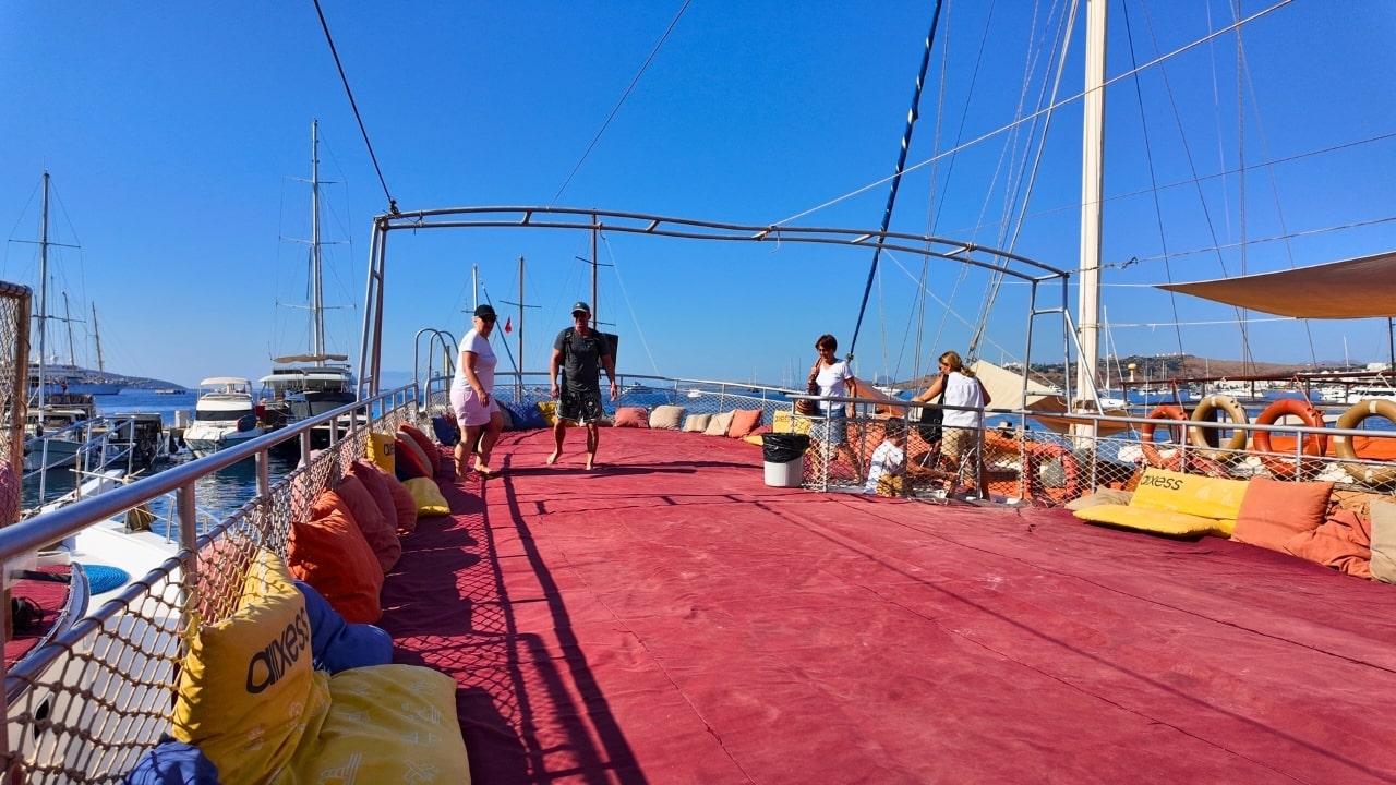 Denize AtlaTransfer tercih eden misafirler sabah saatlerinde otellerinden alınır. Kendi imkânlarıyla gelenler Bodrum Marina'da buluşur.