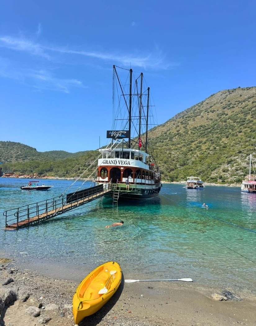 Grand Vega teknesi ile Fethiye’nin en güzel koylarını keşfedin. Kelebekler Vadisi, Akvaryum Koyu ve Mavi Mağara’nın eşsiz güzelliklerinde yüzme molası verin.