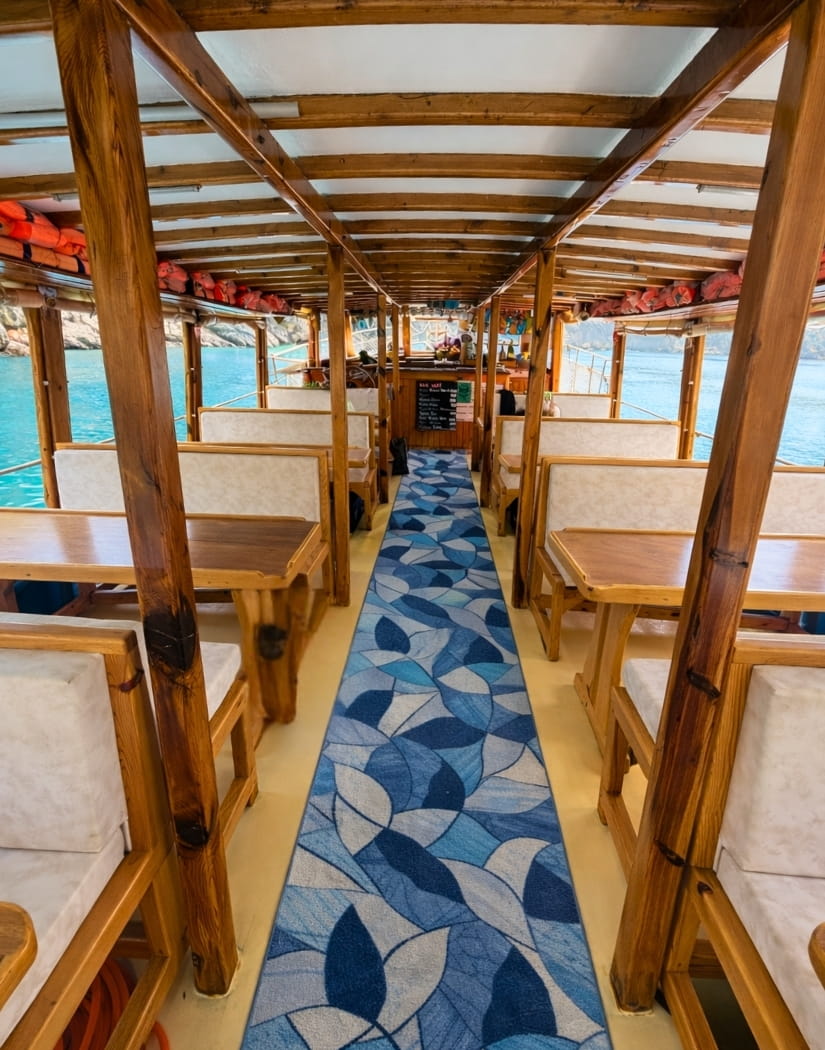Tekne turu, öğle yemeği (tavuk/balık menüsü), sınırsız çay ve su ikramı tur ücretine dahildir.