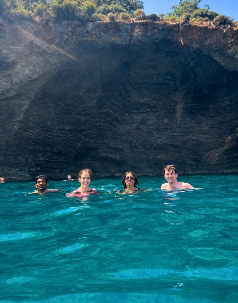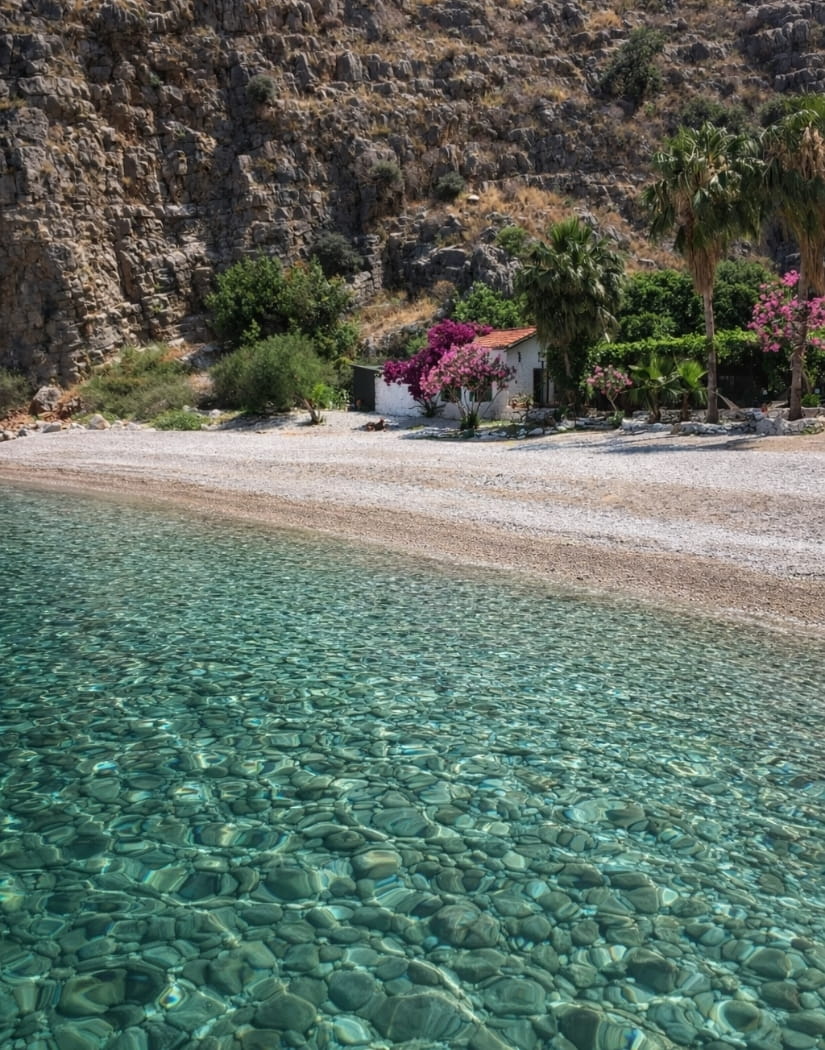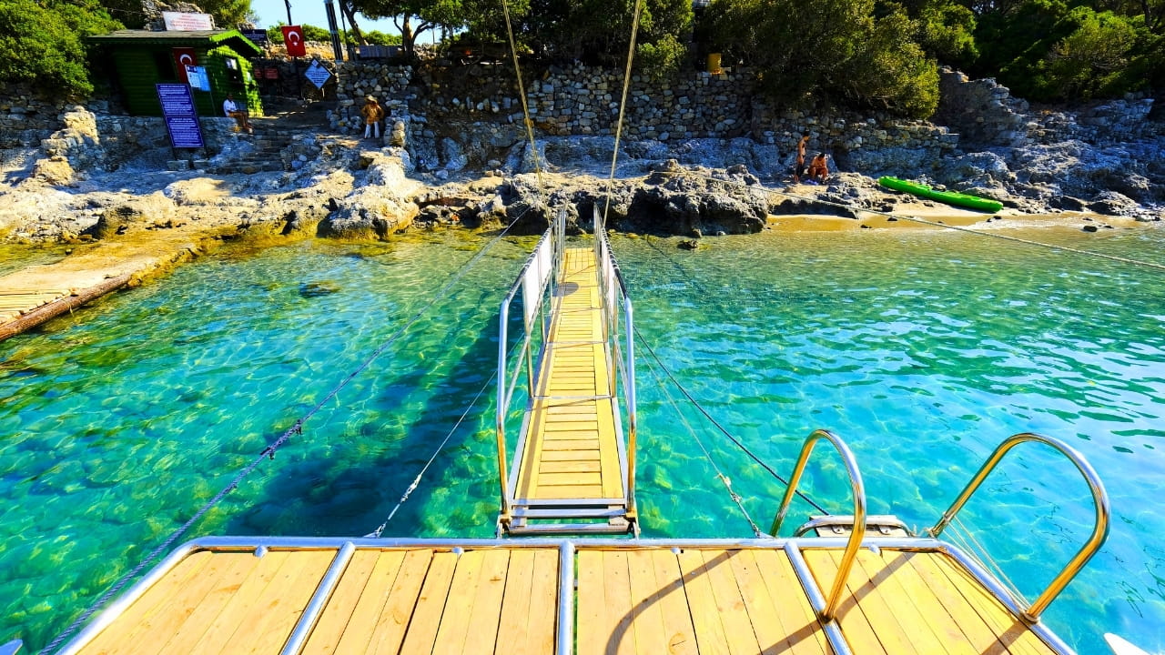 Berrak turkuaz sularda serinleme ve yüzme keyfi. Sakin koyların temiz sularında güvenli yüzme imkanı tüm aile için ideal.