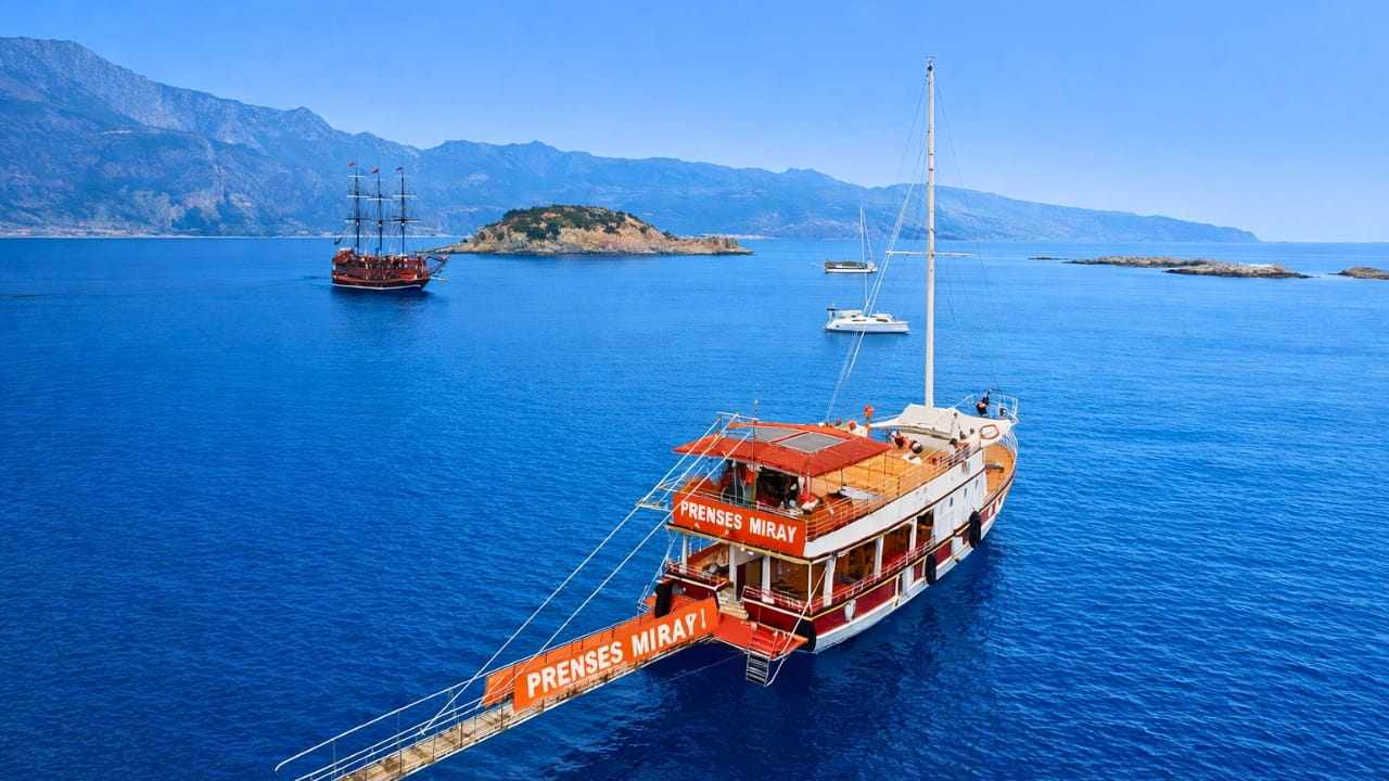 Fethiye Kelebekler Vadisi Prenses Miray Tekne Turu, Fethiye Limanı’ndan hareketle Kelebekler Vadisi, Akvaryum Koyu, Deve Plajı, Mavi Mağara, Soğuk Su Koyu ve St. Nicholas Adası’nı kapsayan günlük bir tekne turudur. Berrak sularda yüzme molaları, şnorkel keyfi ve huzurlu bir deniz yolculuğu sunar. Öğle yemeği ve alkolsüz içecekler fiyata dahildir. Fethiye bölgesinden transfer hizmeti sunulmaktadır.