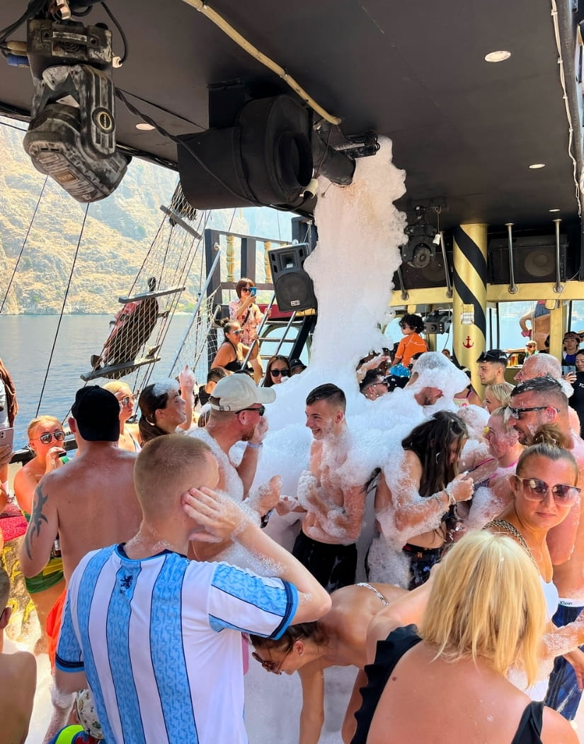 Salazar teknesinde renkli köpük partisi eğlencesi sizi bekliyor. Müzik eşliğinde dans ederek denizde unutulmaz anlar yaşayacaksınız.