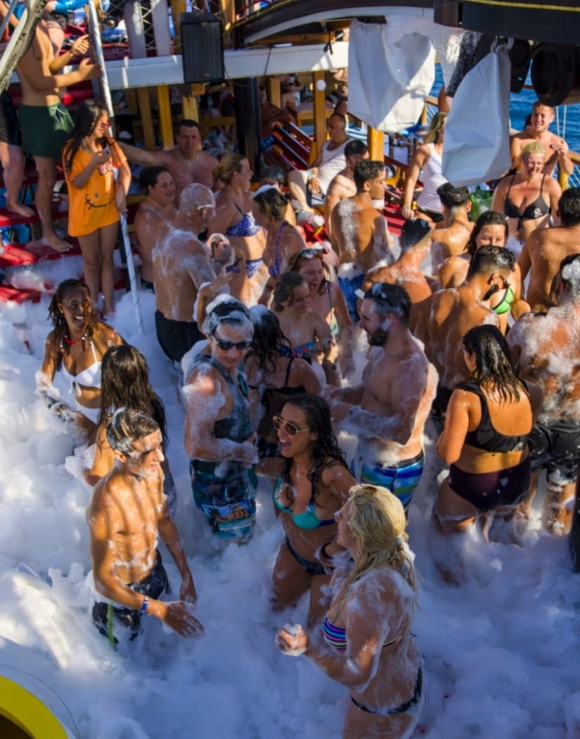 Davy Jones gemisinde müzik hiç susmuyor! Köpük partisiyle çocuklar gibi eğlenirken, Marmaris'in maviliklerinde dans etmenin keyfini çıkarın. Bu eşsiz korsan macerasında her anınız kahkahalarla ve sınırsız neşeyle dolu geçecek.