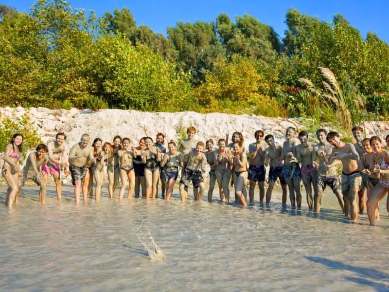 Doğal çamur banyosunda eğlenceli anlar yaşanır. Çamurun cilde faydaları olduğuna inanılır ve keyifli bir deneyim sunar.