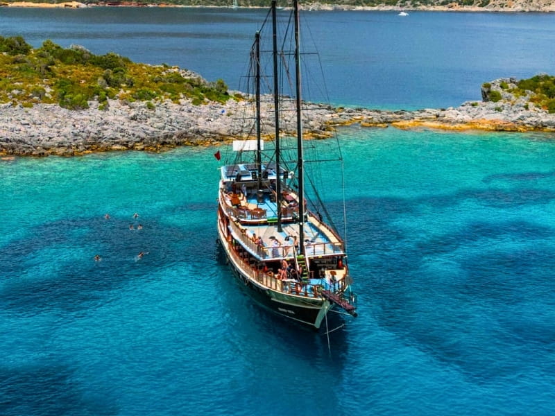 Grand Vega teknesi ile Fethiye'nin en güzel koylarını keşfedin. Kelebekler Vadisi, Akvaryum Koyu ve Mavi Mağara'nın eşsiz güzelliklerinde yüzme molası verin.