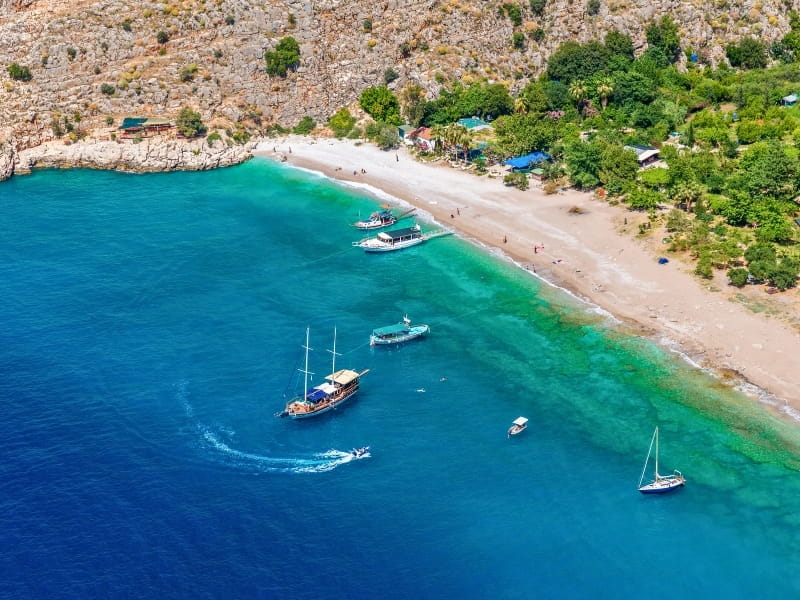 Fethiye'nin en ünlü doğa harikası Kelebekler Vadisi'nde 1 saatlik mola. Endemik kelebek türleri ve el değmemiş doğal plajın keyfini çıkarın.