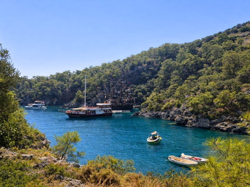 Fethiye'nin en güzel koylarını keşfedin. Kelebekler Vadisi'nin mistik atmosferi, berrak turkuaz sular ve lezzetli öğle yemeği eşliğinde günlük tekne turu keyfi.